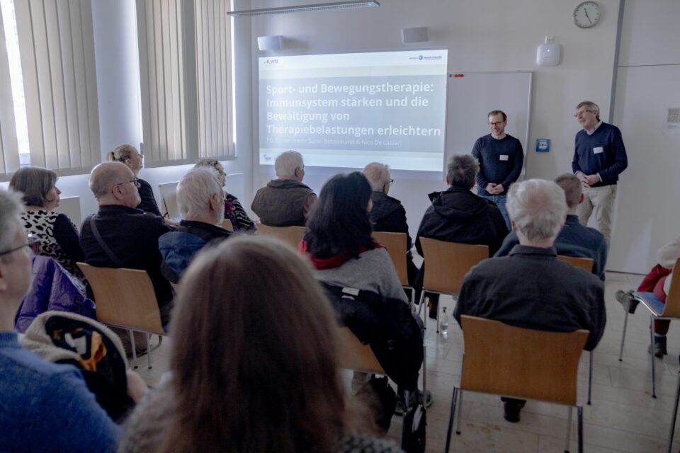 Prof. Dr. med. Annalen Bleckmann, Direktorin WTZ Münster, das auch mit Referierenden vertreten war, ist vom Konzept des Krebstags überzeugt: „Bei unserem gemeinsamen Patiententag, sei es dem Krebstag Ruhr oder dem im März stattfindenden Krebstag Westfalen, steht im Vordergrund der persönliche Austausch zu dem breitgefächerten Angebot der medizinischen Fachbereiche, der supportiven Angebote und der Selbsthilfe. Diese Interdisziplinarität wird im WTZ Netzwerk jeden Tag gelebt.“ Beim Krebstag können sich die Besucherinnen und Besucher persönlich mit Krebs-Spezialist*innen, Pflegefachpersonen, Mitgliedern der Beratungs- und Unterstützungsangebote am WTZ und Selbsthilfegruppen austauschen und Einblicke in den neuesten Stand von Krebsforschung und -behandlung erlangen. Begleitet wurde das vielseitige Programm von einem Hautkrebs-Check der Hautklinik, einem Verkostungsangebot der WTZ-Ernährungsberatung und Sporteinheiten für Krebspatient*innen durch die WTZ-Sport-Expert*innen.