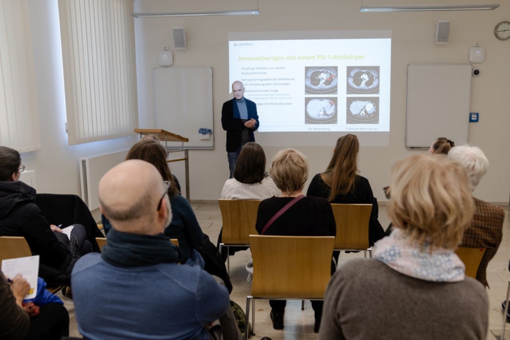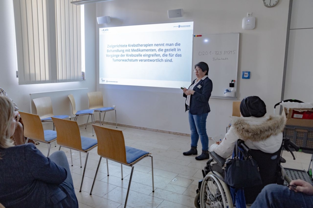 Das Programm wurde daher erneut inhaltlich geplant und auch vor Ort eng begleitet durch Vertretende des WTZ Patientenbeirats. Diese tauschten sich nicht nur vorab für ein optimales Gelingen mit den Referierenden aus, sondern moderierten auch die 14 Workshops am Tag selbst. Julia Elmer vom WTZ-Patientenbeirat: „Patienten haben dadurch den Vorteil, dass nur patientennahe und für sie relevante Themen behandelt werden und diese kommunikativ verständlich aufbereitet präsentiert werden. Zudem können sich Erkrankte an einem Tag wie diesem nicht nur mit anderen Betroffenen, sondern auch mit den Ärztinnen und Ärzten abseits der therapiebegleitenden Gespräche auf Augenhöhe und in Ruhe zu ihrer Erkrankung austauschen.“