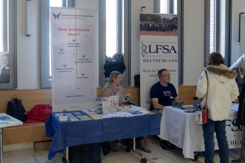 Zum ersten Mal konnte die etablierte Patientenveranstaltung mit einer Förderung der Deutschen Krebshilfe realisiert werden. Gerd Nettekoven, Vorstandsvorsitzender der Deutschen Krebshilfe, begrüßte die Teilnehmenden via Videobotschaft und führte in den Tag ein: „Seit nunmehr 50 Jahren setzt sich die Deutsche Krebshilfe für die Belange von Krebspatientinnen und Patienten ein. Betroffene umfassend und allgemeinverständlich zu informieren, ist eine unserer Kernaufgaben. Wir möchten sicherstellen, dass die Informationen nicht nur qualitativ hochwertig, sondern auch unabhängig von wirtschaftlichen Interessen sind. Der heutige Patientenkongress findet daher ohne jegliche Beteiligung der pharmazeutischen Industrie statt. Er ist ideell und mit finanziellen Mitteln der Deutschen Krebshilfe unterstützt.“ Die Deutsche Krebshilfe stand den Besuchern auch persönlich an einem Infostand mit ihren Angeboten für den individuellen Austausch zur Verfügung.