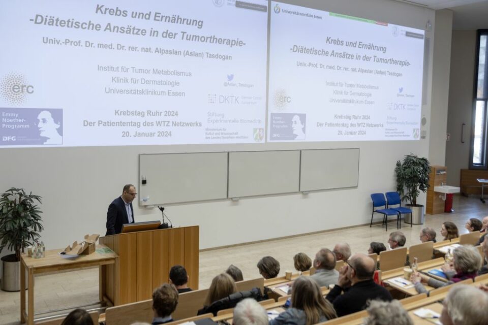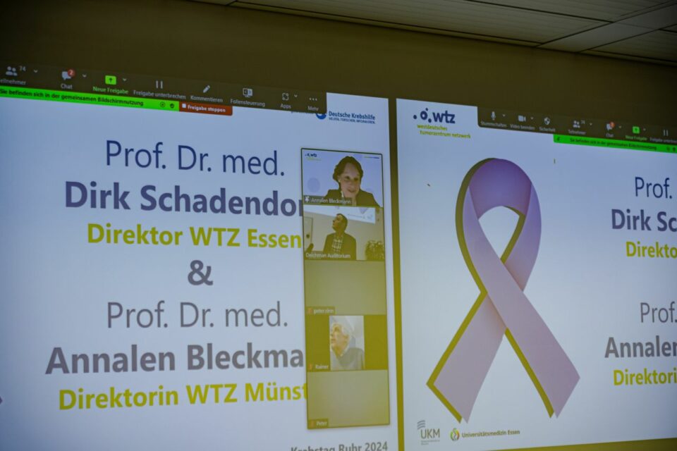 Am Samstag, 20.01.2024 fand der sechste Krebstag Ruhr des Westdeutschen Tumorzentrum (WTZ) Netzwerks unter Beteiligung der Deutschen Krebshilfe und des Bundesministeriums für Gesundheit (BMG) statt. Es informierten sich über 300 Interessierte vor Ort im Lehr- und Lernzentrum am Universitätsklinikum Essen sowie digital über Zoom.