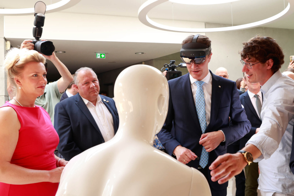 Ministerpräsident Hendrik Wüst MdL und NRW-Wissenschaftsministerin Ina Brandes informierten sich bei dem heutigen Symposium über die neuesten Forschungsergebnisse. Ministerpräsident Hendrik Wüst hielt die Key Note Lecture zum Symposium und machte deutlich: „Nordrhein-Westfalen ist ein Hotspot der KI-Forschung. Spitzen-Krebsmedizin aus unserem Land ist ein besonders eindrucksvolles Beispiel für die riesigen Potentiale der KI-Revolution: Ein tieferes Verständnis von Krankheiten dank KI-gestützter Datenanalyse, eine auf die individuelle Erkrankung zugeschnittene, personalisierte Therapie und präzisere Krebschirurgie dank Augmented Reality. Durch die enorme Beschleunigung in der Forschung und den Einsatz Künstlicher Intelligenz werden wir Krebs und Demenz in den nächsten Jahren wesentlich erfolgreicher bekämpfen können. Dies ist erklärtes Ziel der Landesregierung. Die interdisziplinäre Spitzenforschung an der Schnittstelle von Medizin und KI, die Wissenschaftlerinnen und Wissenschaftler hier im Cancer Research Center Cologne Essen vorantreiben, kommt unmittelbar den Patientinnen und Patienten zugute. Wenn es um den Sieg gegen den Krebs geht, schauen Deutschland und Europa auch und vor allem nach Nordrhein-Westfalen.“