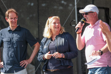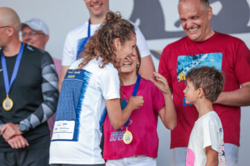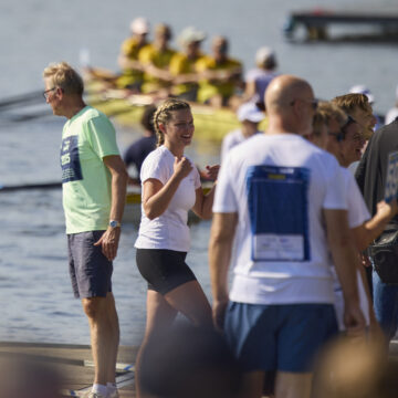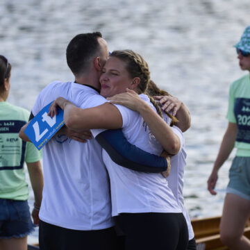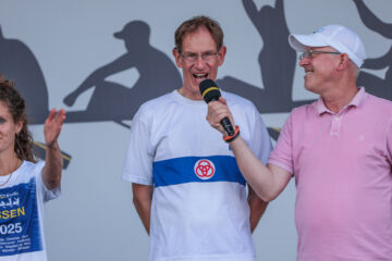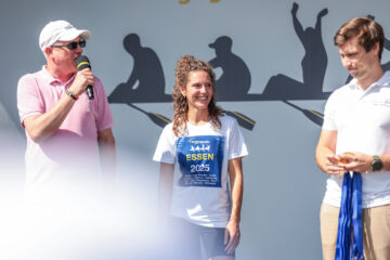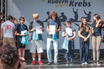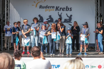 Eine besondere Neuerung 2025 war die Teilnahme von Patient*innen-Booten mit Erwachsenen, die die bereits etablierten Rennen der ActiveOncoKids ergänzten. Damit rückte die Veranstaltung noch stärker die Bedeutung von Bewegung für Krebspatient*innen aller Altersgruppen in den Mittelpunkt. Bürgermeisterin Julia Jacob übernahm die Siegerehrung und betonte: „Die Regatta zeigt, wie stark Sport, Gesundheit und Solidarität hier in Essen zusammengehören. Es ist beeindruckend, mit welcher Begeisterung Patienten und gesunde Erwachsene in den Booten gerudert sind und am Wettbewerb Freude hatten.“